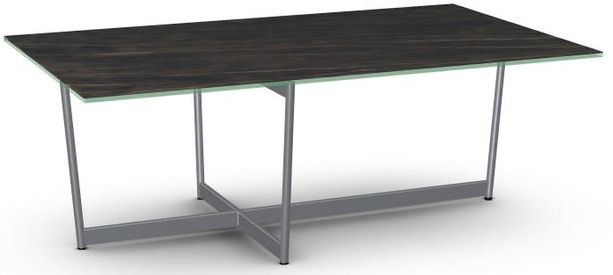 The Amisco Jill Italian Porcelain Coffee Table features Italian porcelain on a glass tabletop in a black marble finish with a flat edge and an x-shaped metal frame. Additional tabletop and colour options are available from your local dealer.