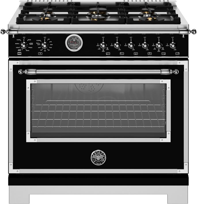 The 5.7 cu.ft electric self-clean oven with dual diagonal convection allows even baking and roasting on 7 shelf levels. Bertazzoni ovens are equipped with an extralarge high-power broiler for broiling and grilling.