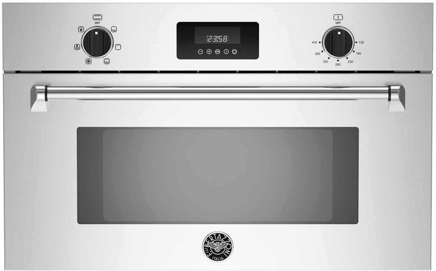 Bertazzoni ovens are superb cooking appliances designed, engineered and made in Italy. All Bertazzoni appliances integrate seamlessly into style-harmonized suites for a true, high-performing kitchen. The speed oven combines convection baking, electric grill and microwave in one versatile unit. The baking and microwave functions can be used together to complete cooking cycles in up to half the time without compromising results. With its intuitive controls and family-sized capacity, the Bertazzoni speed oven will become your go-to oven in your kitchen. All Bertazzoni appliances are covered by a 2-year warranty. Products and packaging are 99% recyclable.
