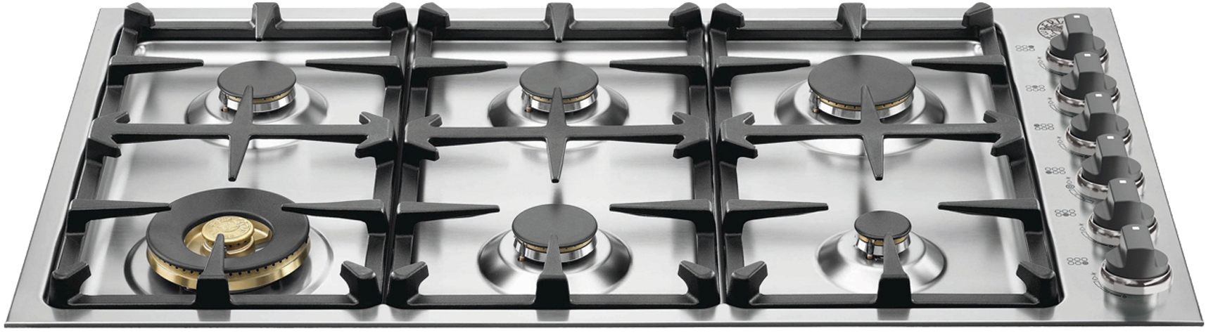 Bertazzoni rangetops and cooktops are superb cooking appliances designed, engineered and made in Italy. All Bertazzoni appliances integrate seamlessly into style-harmonized suites for a true, high-performing kitchen. Available in 4, 5 and 6 burner configurations, Bertazzoni gas cooktops are crafted from a single sheet of highest grade stainless steel, the signature engineering solution of all Bertazzoni maintops. This proprietary design makes it very easy to clean. The dual-ring power-burner is rated at 18,000 BTUs, boiling water in under 6 minutes and simmering at an extremely low temperature. All burners are made from cast brass for enhanced performance. All Bertazzoni appliances are covered by a 2-year warranty. Products and packaging are 99% recyclable.