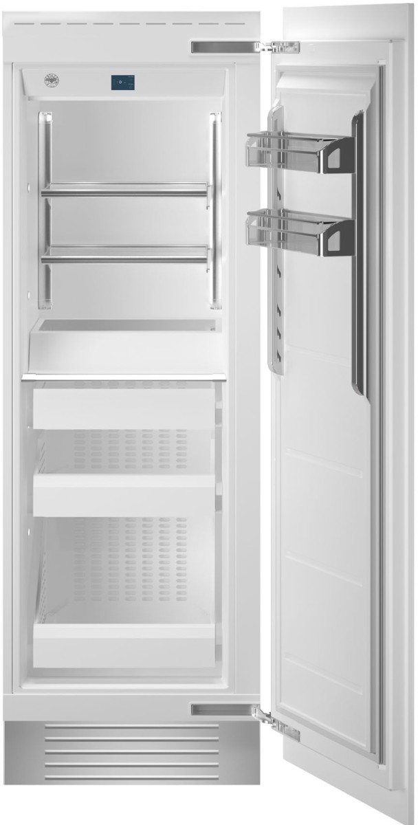 These premium built-in column freezers are masterpieces of Bertazzoni design and technology. Their stylish panel ready front doors reflect close attention to detail and high-quality materials, inside and out. The large capacity cavity offers versatile storage with 2 height-adjustable shelves, plus the top of the ice maker acting as another shelf. 3 drawers and 2 height-adjustable door bins complete the picture.Read More