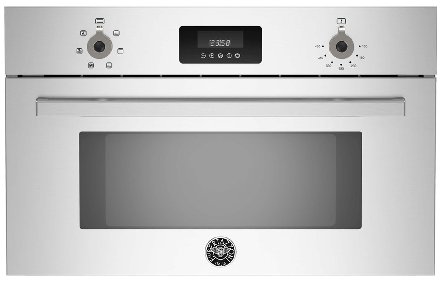 Bertazzoni ovens are superb cooking appliances designed, engineered and made in Italy. All Bertazzoni appliances integrate seamlessly into style-harmonized suites for a true, high-performing kitchen. The speed oven combines convection baking, electric grill and microwave in one versatile unit. The baking and microwave functions can be used together to complete cooking cycles in up to half the time without compromising results. With its intuitive controls and family-sized capacity, the Bertazzoni speed oven will become your go-to oven in your kitchen. All Bertazzoni appliances are covered by a 2-year warranty. Products and packaging are 99% recyclable.