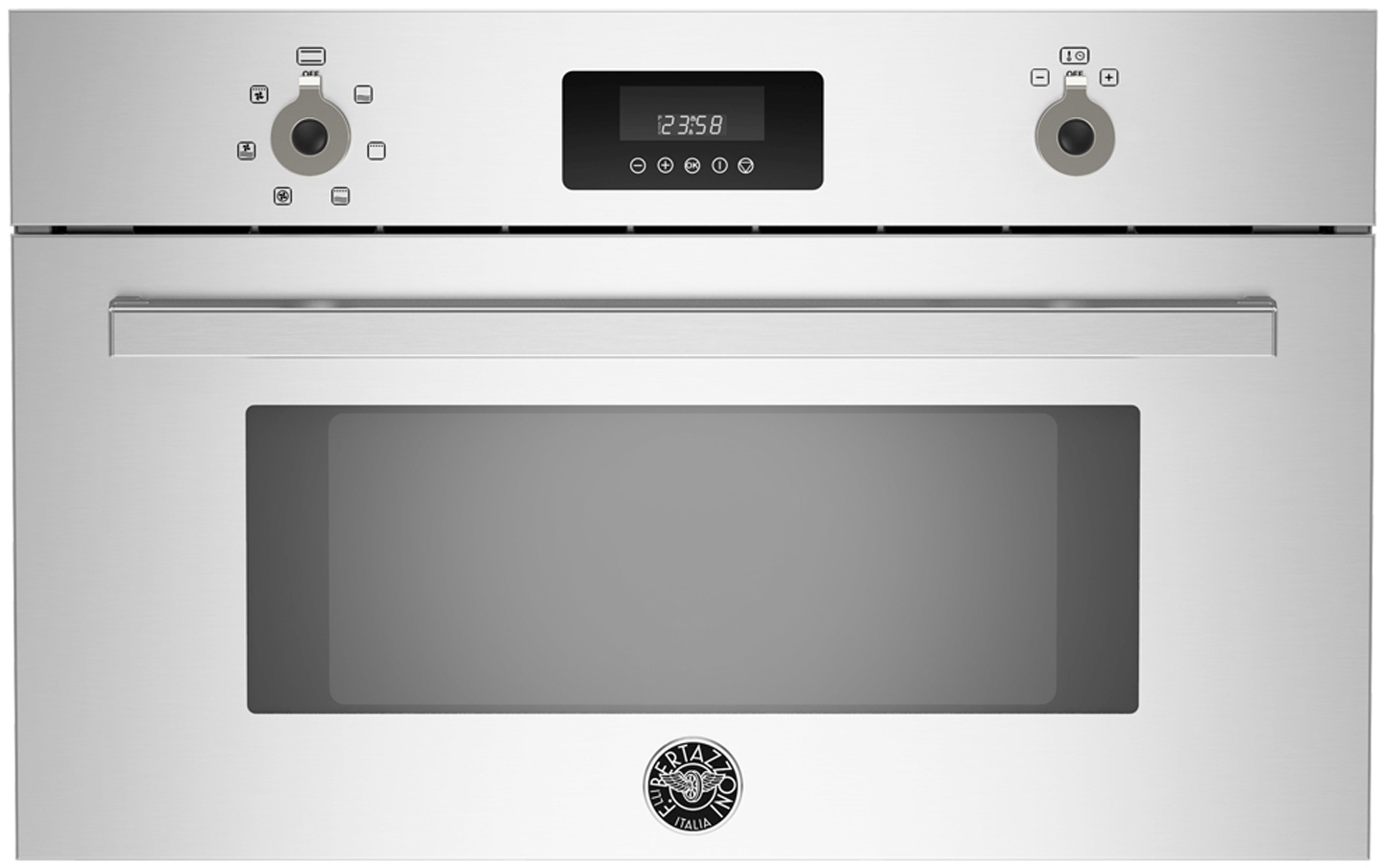 Bertazzoni ovens are superb cooking appliances designed, engineered and made in Italy. All Bertazzoni appliances integrate seamlessly into style-harmonized suites for a true, high-performing kitchen. The convection steam oven combines convection baking, electric grilling and steam in one versatile unit. Using water-generated steam in the cooking cycle in addition to convection helps maintain balanced moisture in the food while sealing-in flavors and vitamins. With its intuitive controls and family-sized capacity, the Bertazzoni convection steam oven delivers the healthiest and most flavorful cooking results. All Bertazzoni appliances are covered by a 2-year warranty. Products and packaging are 99% recyclable.