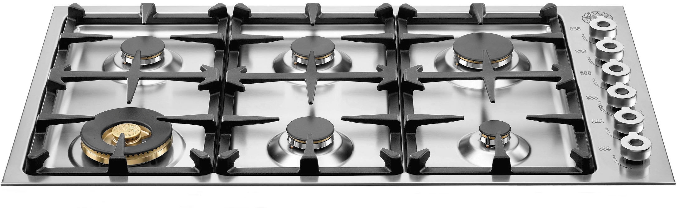 Bertazzoni rangetops and cooktops are superb cooking appliances designed, engineered and made in Italy. All Bertazzoni appliances integrate seamlessly into style-harmonized suites for a true, high-performing kitchen. Available in 4, 5 and 6 burner configurations, Bertazzoni gas cooktops are crafted from a single sheet of highest grade stainless steel, the signature engineering solution of all Bertazzoni maintops. This proprietary design makes it very easy to clean. The dual-ring power-burner is rated at 18,000 BTUs, boiling water in under 6 minutes and simmering at an extremely low temperature. All burners are made from cast brass for enhanced performance. All Bertazzoni appliances are covered by a 2-year warranty. Products and packaging are 99% recyclable.