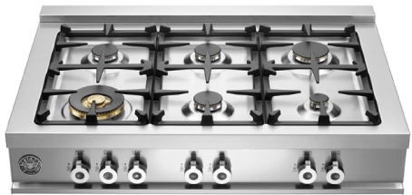 Bertazzoni rangetops and cooktops are superb cooking appliances designed, engineered and made in Italy. All Bertazzoni appliances integrate seamlessly into style-harmonized suites for a true, high-performing kitchen. Available in 5 and 6 burner configurations, Bertazzoni gas rangetops signature maintops are crafted from a single sheet of highest grade stainless steel. This proprietary design makes it very easy to clean. The dual-ring power-burner rated is at 18,000 BTUs, boiling water in under 6 minutes and simmering at an extremely low temperature. All burners are made from cast brass for enhanced performance. All Bertazzoni appliances are covered by a 2-year warranty. Products and packaging are 99% recyclable.