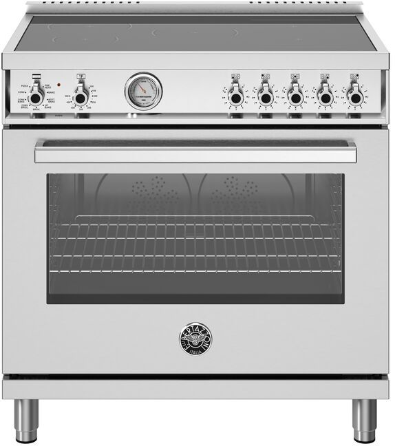 5.9 cu.ft electric oven with dual horizontal convection fans for even baking and roasting on 7 shelf levels. Bertazzoni ovens are equipped with an extra-large highpower broiler for broiling and grilling.