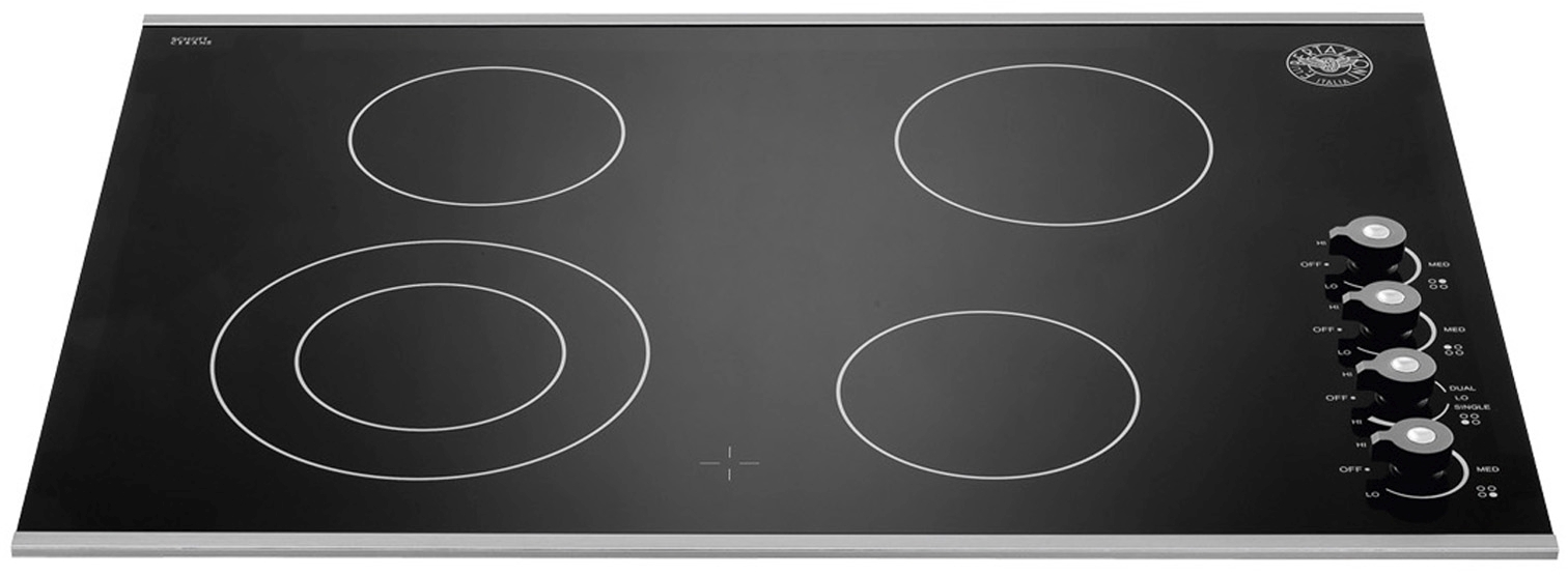 Bertazzoni rangetops and cooktops are superb cooking appliances designed, engineered and made in Italy. All Bertazzoni appliances integrate seamlessly into style-harmonized suites for a true, high-performing kitchen. The ceramic glass electric cooktops have a black glass maintop with stainless front and back edges and push-and-turn knobs. Four heating zones, with a 9-inch expandable dual-zone heating element and residual heat indicator, deliver complete cooking versatility and control. All Bertazzoni appliances are covered by a 2-year warranty. Products and packaging are 99% recyclable.