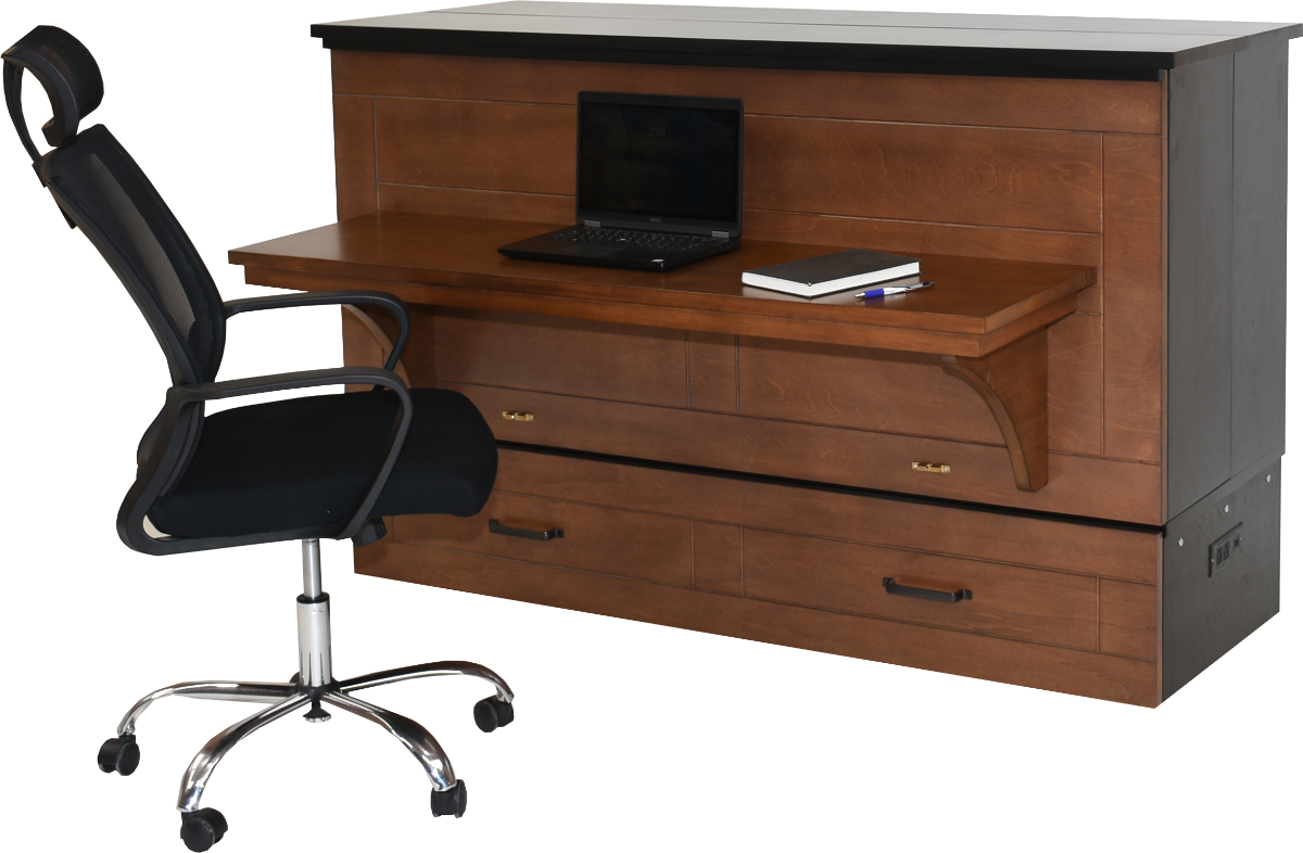 The Studio Cojoba is a free standing Cabinet Bed that easily converts into a comfortable bed in 30 under seconds. It features stylized grooved panels, opening side panels and can support a 60" TV screen. A computer desk integrated into the front of the cabinet adds an extra function to the standard CabinetBed.Read More