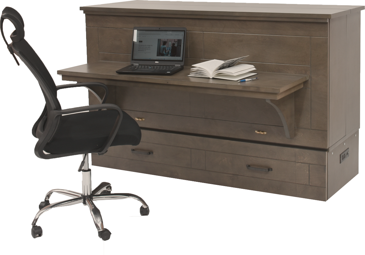 The Studio Grey is a free standing Cabinet Bed that easily converts into a comfortable bed in 30 under seconds. It features stylized grooved panels, opening side panels and can support a 60" TV screen. A computer desk integrated into the front of the cabinet adds an extra function to the standard CabinetBed.Read More