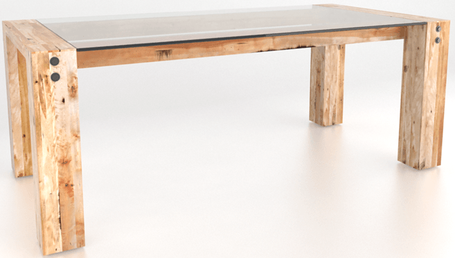 Natural Rustic Washed Finished Wood Glass Top Table with Study Thick Wood Block LegsRead More