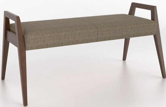 Cognac washed wood bench in an east side finish with unique hand hole design and tapered legRead More