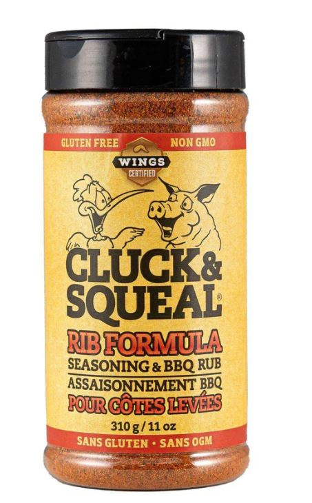 This award-winning rib rub is formulated lower in salt, so it can be applied generously. Once your ribs are tender, glaze them with pure maple syrup and add a dusting of Rib Formula. No need for sauce! Cluck & Squeal Rib Formula is also a proven winner with pork belly, chicken wings, and thighs. This product welcomes the addition of sweet, spicy, and espresso grounds. The Cluck & Squeal website features recipes that expand the use of this product – pork ribs are just the beginning! Original Rib Rub Recipe The best ribs ever. Coat/rub the ribs liberally and allow the spices to fuse with the ribs for a minimum of 1-2 hours prior to cooking. (TIP - Coat your ribs in mustard so the rub adheres) Cook your ribs your style. Smoke, bake, low and slow or slow cooker. Finish with a touch of maple syrup to sweeten it up a notch or add Tasty Hot to Cluck & Squeal All Purpose blend to add that touch of heat and kick. WE LOVE IT ON: Pork Ribs & Belly, Chicken, Fish, Chicken, Shrimp, Vegetables, Potatoes, Soups & Stews especially coconut based, Dips, complement amazingly with sweet (designed especially to pair with maple syrup) & heat, and much, much more.Read More