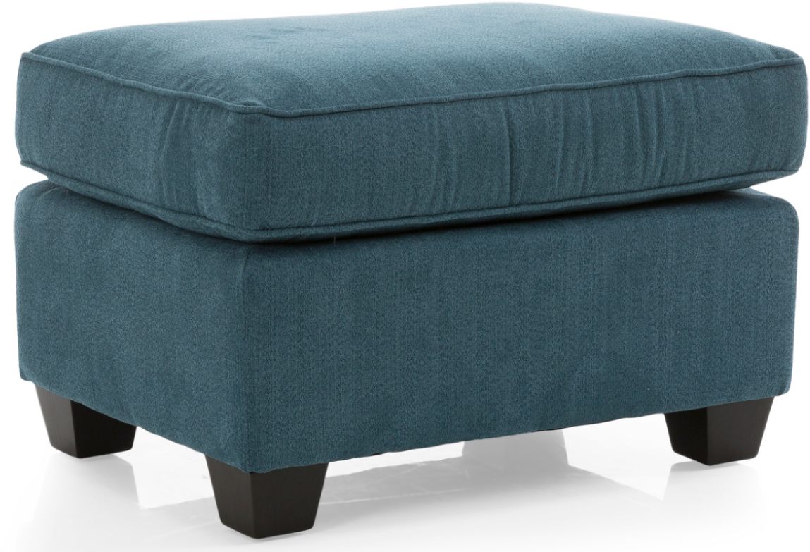 Decor-Rest® 2541 Blue Ottoman features an attached cushion top while a banded base and block feet in a black finish completes the look.