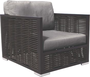 Simple black aluminum frames are inset with full-round wicker panelling to blend textures. Our Chestnut range features robust and classic silhouettes that are easy to style. Bring the comfort of your living room outdoors.Read More