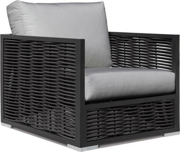 Simple black aluminum frames are inset with full-round wicker panelling to blend textures. Our Chestnut range features robust and classic silhouettes that are easy to style. Bring the comfort of your living room outdoors.Read More