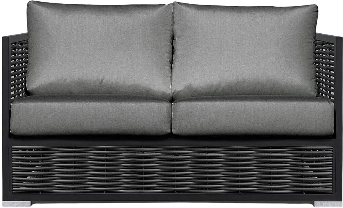 Simple black aluminum frames are inset with full-round wicker panelling to blend textures. Our Chestnut range features robust and classic silhouettes that are easy to style. Bring the comfort of your living room outdoors.Read More