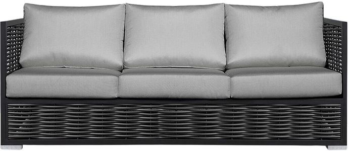 Simple black aluminum frames are inset with full-round wicker panelling to blend textures. Our Chestnut range features robust and classic silhouettes that are easy to style. Bring the comfort of your living room outdoors.Read More