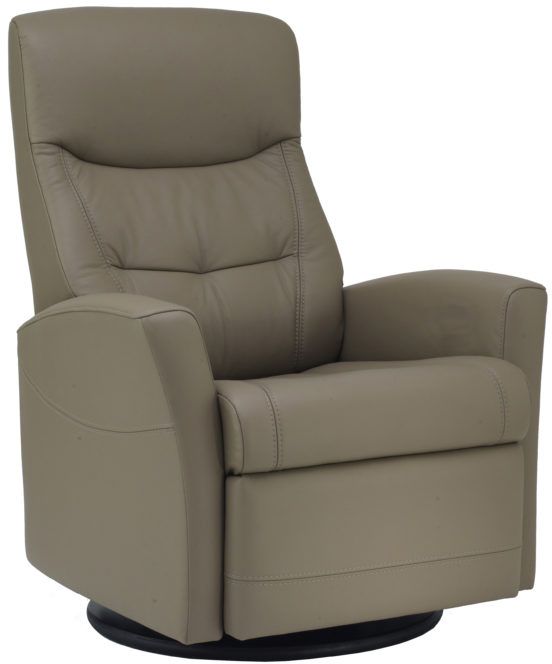 The Fjords Oslo swing relaxer, featuring manual release headrest angle, makes the seating experience ergonomic and gives your lower back correct support. Available in all our leathers and select fabrics, the Oslo is a swivel/glider/rocker recliner available in motorized and manual versions.Read More