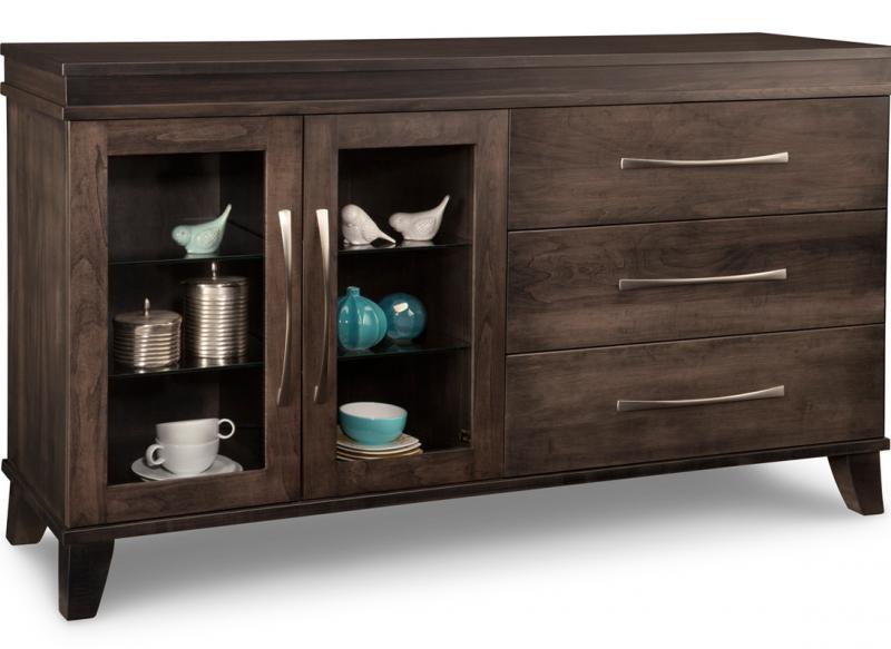 The Verona collection inspires a sense of excitement. Canadian-made from solid wood. Handstone Verona Sideboard w/2 Glass Doors on Left & 3/Dwrs on Right & 2/Glass Adjust. - 62-3/4Wx37Hx18-3/8D.Read More