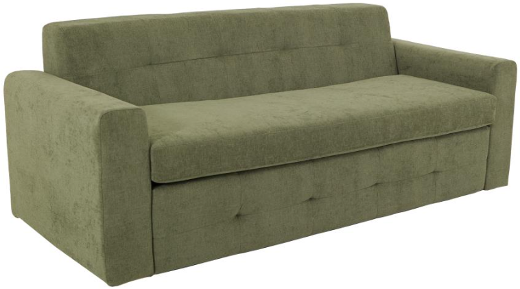 The Mellow Queen Sofa Sleeper features a pull-out queen-size mattress, green fabric upholstery with a slight tufted design, and two throw pillows for added comfort. A stylish and versatile addition to any living space.Read More