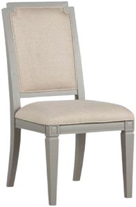 The Glenbrook pebble dining side chair features a soft pebble finish over birch veneer and hardwood solids, with an upholstered seat and matching upholstered slat-back. Measuring approximately 40" high × 20" wide × 24" deep, it includes floor protectors for gentle flooring care.Read More