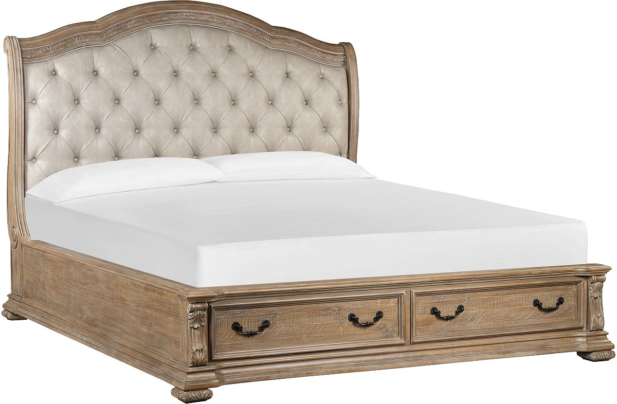 Magnussen Home® Marisol Fawn/Snow Fox Complete Queen Sleigh Storage Bed with Upholstered Headboard