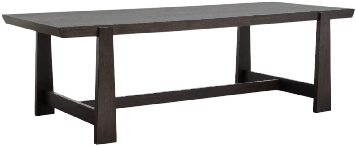 The Tauren Trestle Dining Table is where rustic craftsmanship meets modern geometry. The rich Coffee Bean finish highlights the natural character of rustic oak, while wedge-shaped legs, angular silhouettes, and architectural details give the group a fresh, modern Mission feel.Read More
