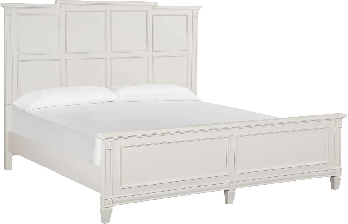 Charming and chic, Willowbrook combines a soft and casual egg shell white finish with classic forms to create a soothing atmosphere that relaxes mind and body. Create a serene setting with vintage silhouettes featuring breakfront shaping on the dresser, panel headboard and mirror, and tarnished silver hardware including a decorated knob and elegant bail pull.Read More