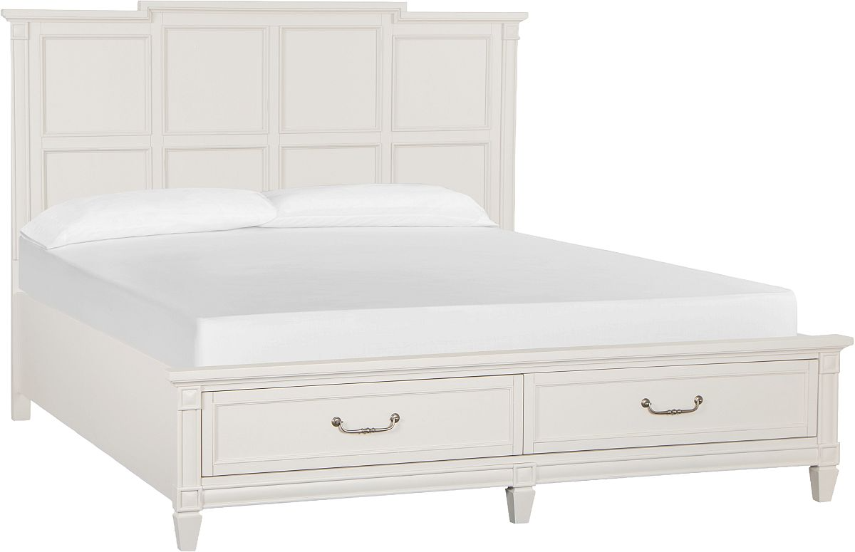 Charming and chic, Willowbrook combines a soft and casual egg shell white finish with classic forms to create a soothing atmosphere that relaxes mind and body. Create a serene setting with vintage silhouettes featuring breakfront shaping on the dresser, panel headboard and mirror, and tarnished silver hardware including a decorated knob and elegant bail pull.Read More