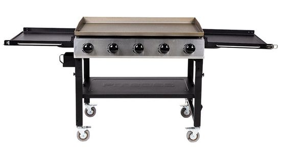 Perfect for a family of 4 or a party of 30, the PB5BGD gives you space and ease to make breakfast, lunch, or dinner. The folding legs and bottom shelf offer a handy fold-and-go design, the side shelves fold over to act as a cover to the griddle surface and the pre-seasoned surface and the side grease tray provide easy, mess-free cooking and clean up. Also, using the easy push and turn ignition system, your next meal is just a turn-of-the-knob away.