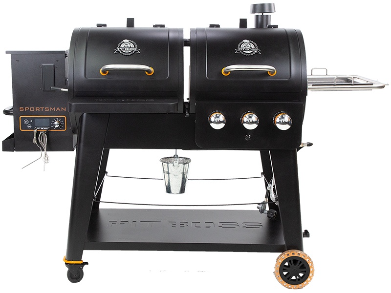 The Pit Boss® Sportsman Series Wood Pellet and Gas Combination Grill delivers a powerful grilling experience for the true outdoorsman. Giving you the choice to use real-wood flavor or the convenience of a gas grill, the Sportsman Series Combo Grill gives you the tools necessary to craft mouthwatering flavor for searing fish, grilling game, smoking jerky or whatever else your outdoor adventure brings you.