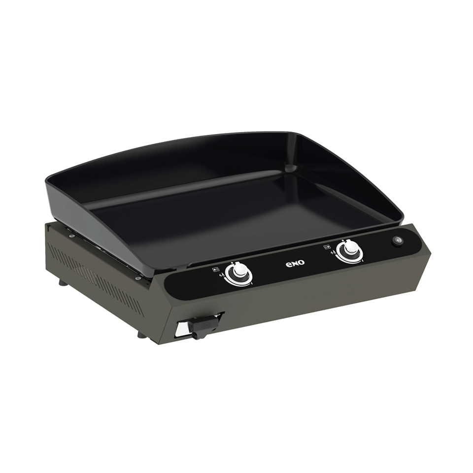 Cast enameled 2 burner gas plancha - Grey coated steel frame Power: 5,6 kW / 19108 BTU/hRead More