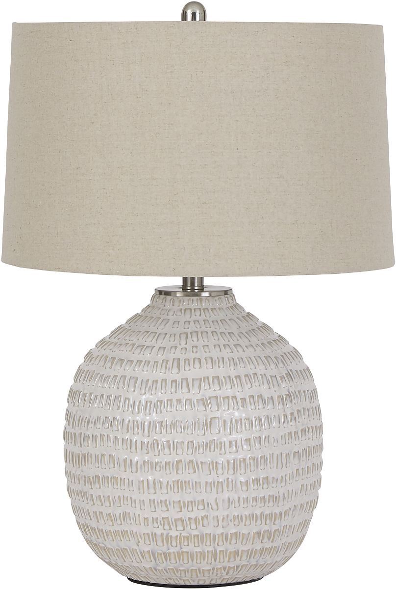With a beige-and white-glaze, gold-tone hardware, and a textured base, the Jamon collection brings a touch of oceanside charm to your home. Make coastal ambiance all the rage with this illuminating collection from Signature Design by Ashley®.