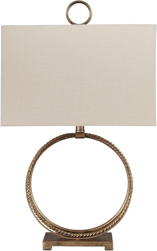 There’s something so elegant about this table lamp's rounded shape. Goldtone braided metal punctuates the less-is-more base for that touch of high drama lighting you crave.